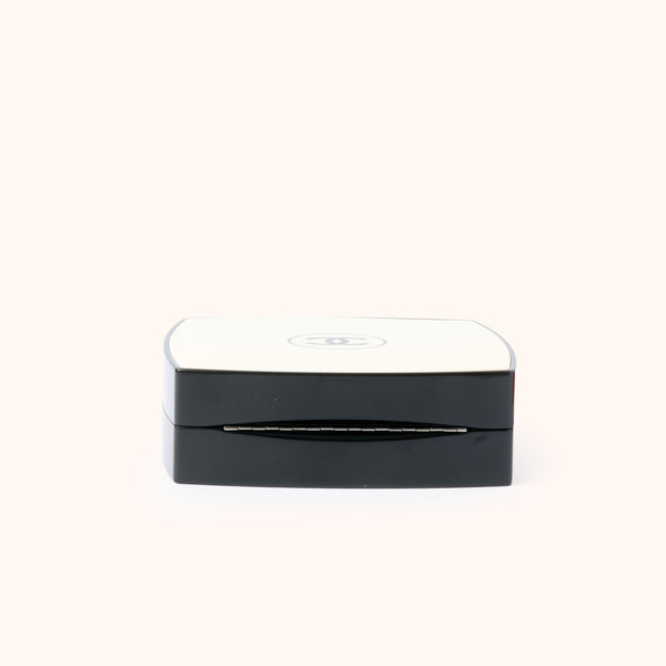 Diese ikonische Chanel Minaudière ist eine Hommage an das klassische Pudercompact der Maison – modern interpretiert als luxuriöses Evening Accessoire. Gefertigt aus glänzendem Plexiglas in kontrastierendem Creme und Schwarz, verleiht sie jedem Outfit ein grafisch-minimalistisches Statement. Das markante CC-Logo auf der Front sowie der silberfarbene Kettenriemen mit eingezogenem Leder verleihen dieser Clutch eine unverkennbare Chanel-Signatur. Ein rares Sammlerstück für Kenner:innen außergewöhnlicher Designobjekte.