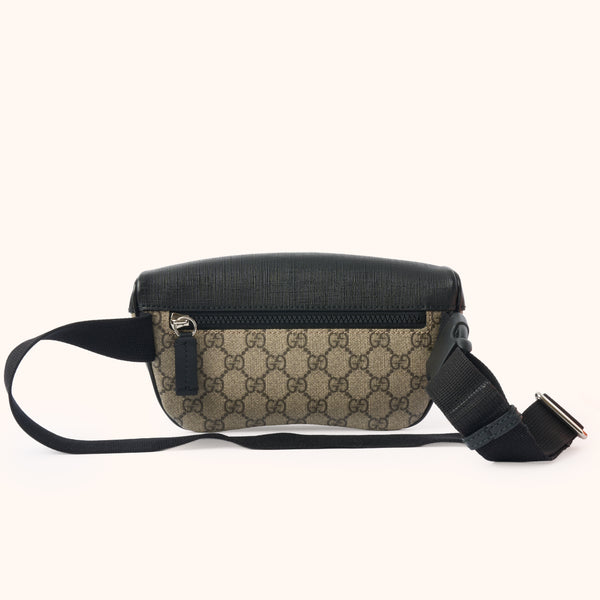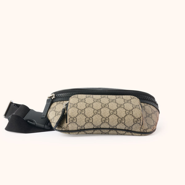 Kompakt, praktisch und stilvoll – die Gucci GG Supreme Belt Bag ist der perfekte Begleiter für unterwegs. Gefertigt aus dem charakteristischen GG Supreme Canvas in Kombination mit schwarzem Leder bietet diese Bauchtasche ausreichend Stauraum bei minimalistischem Design.