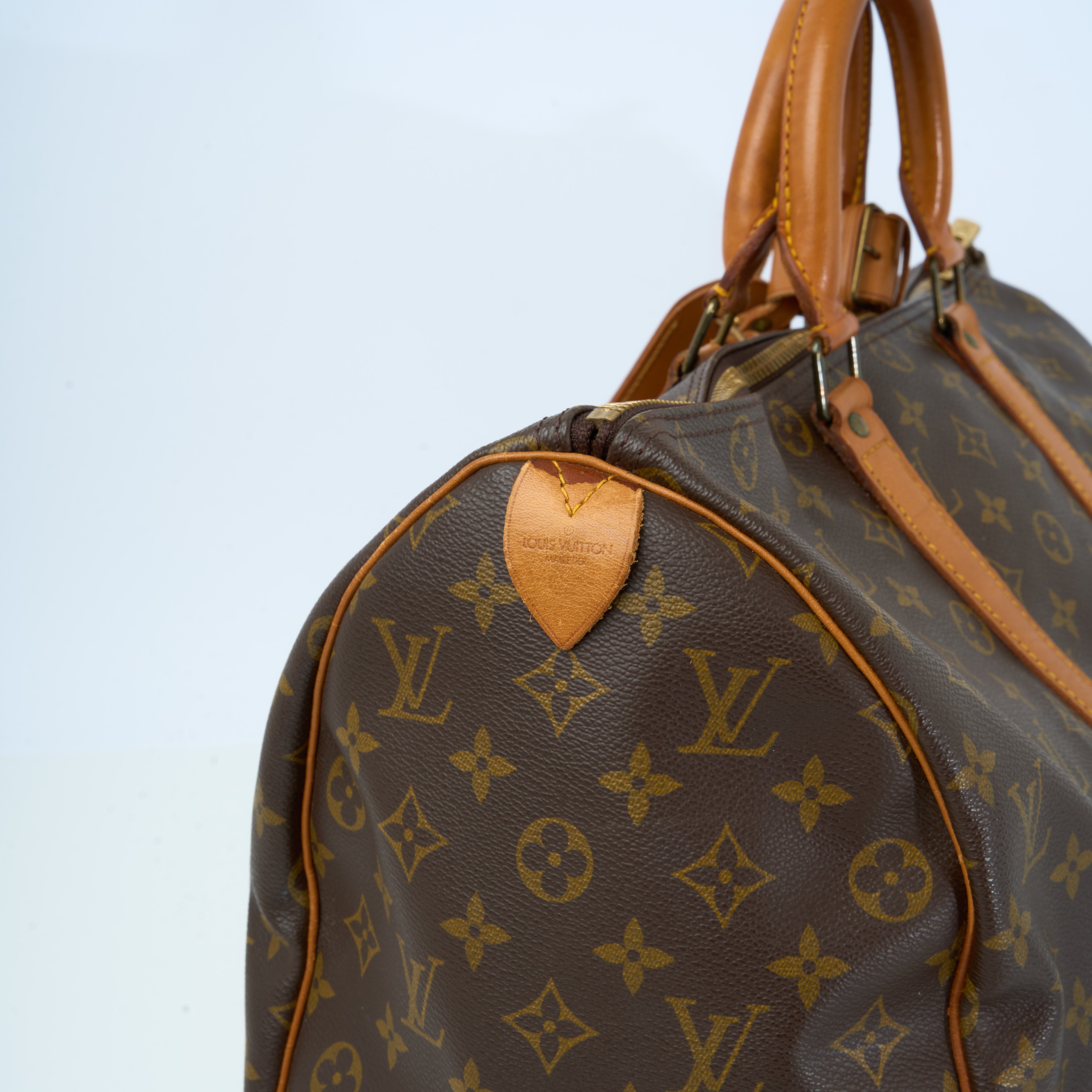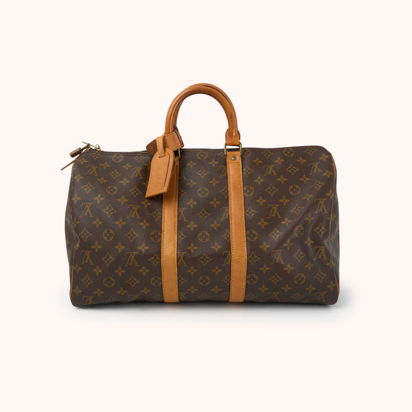 GutDie Keepall 45 von Louis Vuitton ist die kleinste Ausführung der ikonischen Keepall-Reihe und ideal geeignet als Handgepäck oder stilvoller Weekender. Gefertigt aus dem strapazierfähigen und zeitlosen Monogram Canvas mit natürlichen Vachetta-Lederbesätzen, verkörpert sie französische Reise-Eleganz pur.