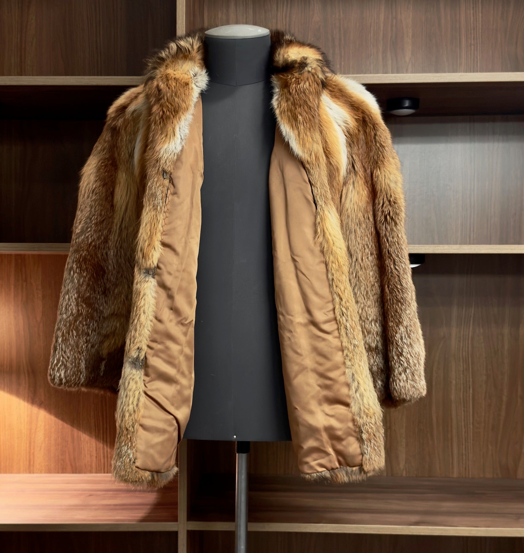 Diese luxuriöse, kurz geschnittene Jacke aus 100% echtem Rotfuchsfell beeindruckt durch ihr warmes, natürliches Farbspiel und die markanten schwarzen Details, die dem Fell eine ausdrucksstarke Tiefe und besondere Raffinesse verleihen. Der klassische Kragen setzt das Gesicht elegant in Szene, während die kompakte Länge eine feminine, moderne Silhouette schafft. Die weiche, dichte Struktur des Fells sorgt für Wärme und ein geschmeidiges Tragegefühl – ein edles Stück hochwertiger Vintage-Pelzkunst.