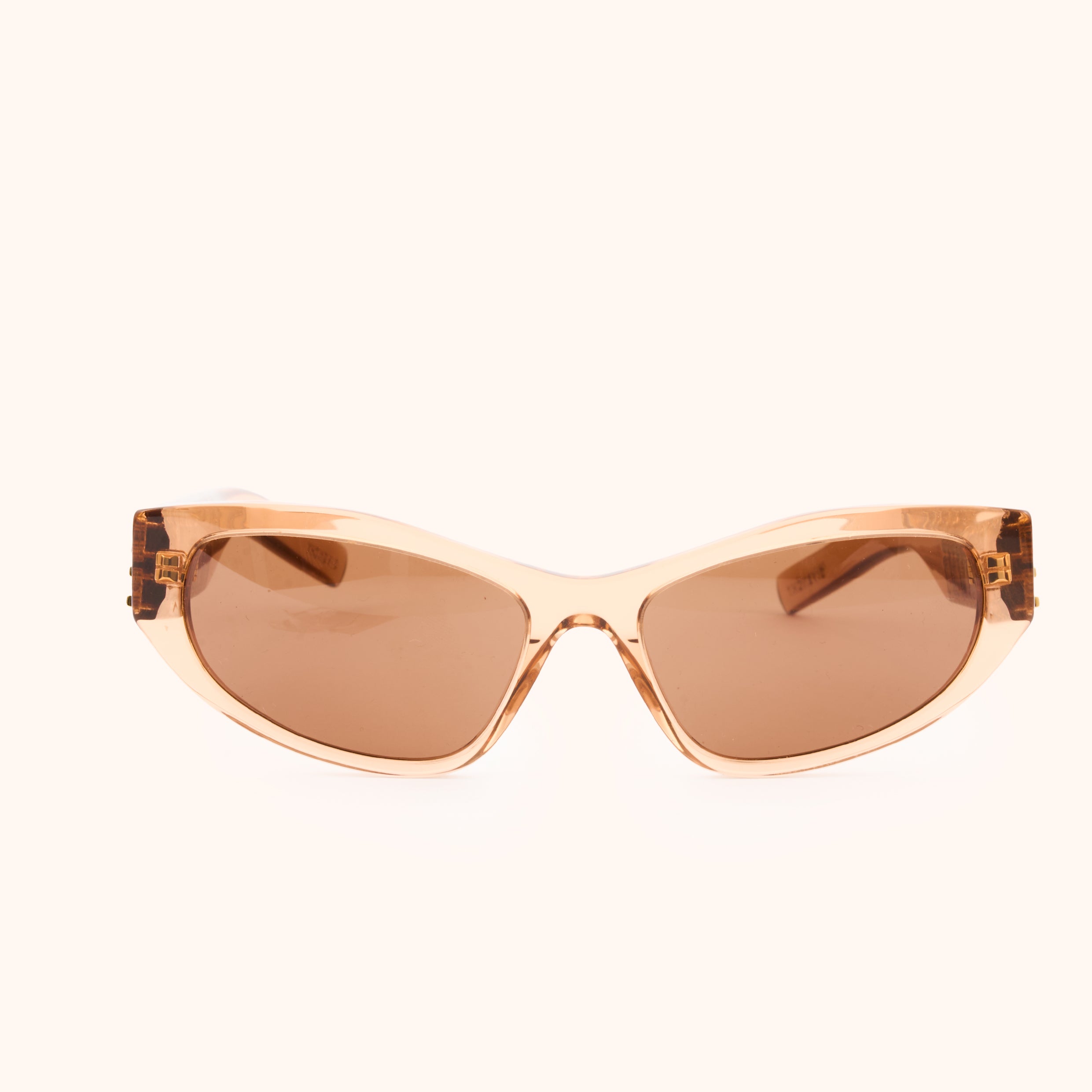 Die Givenchy GV 7148/S vereint markante Cat-Eye-Silhouette mit einem Hauch dekadentem Glamour. Ihr transparenter Pfirsichton strahlt moderne Eleganz aus, während die ikonischen Kristall-Applikationen auf den breiten Bügeln ein klares Zeichen setzen: Diese Brille ist keine Nebensache – sie ist Hauptrolle.