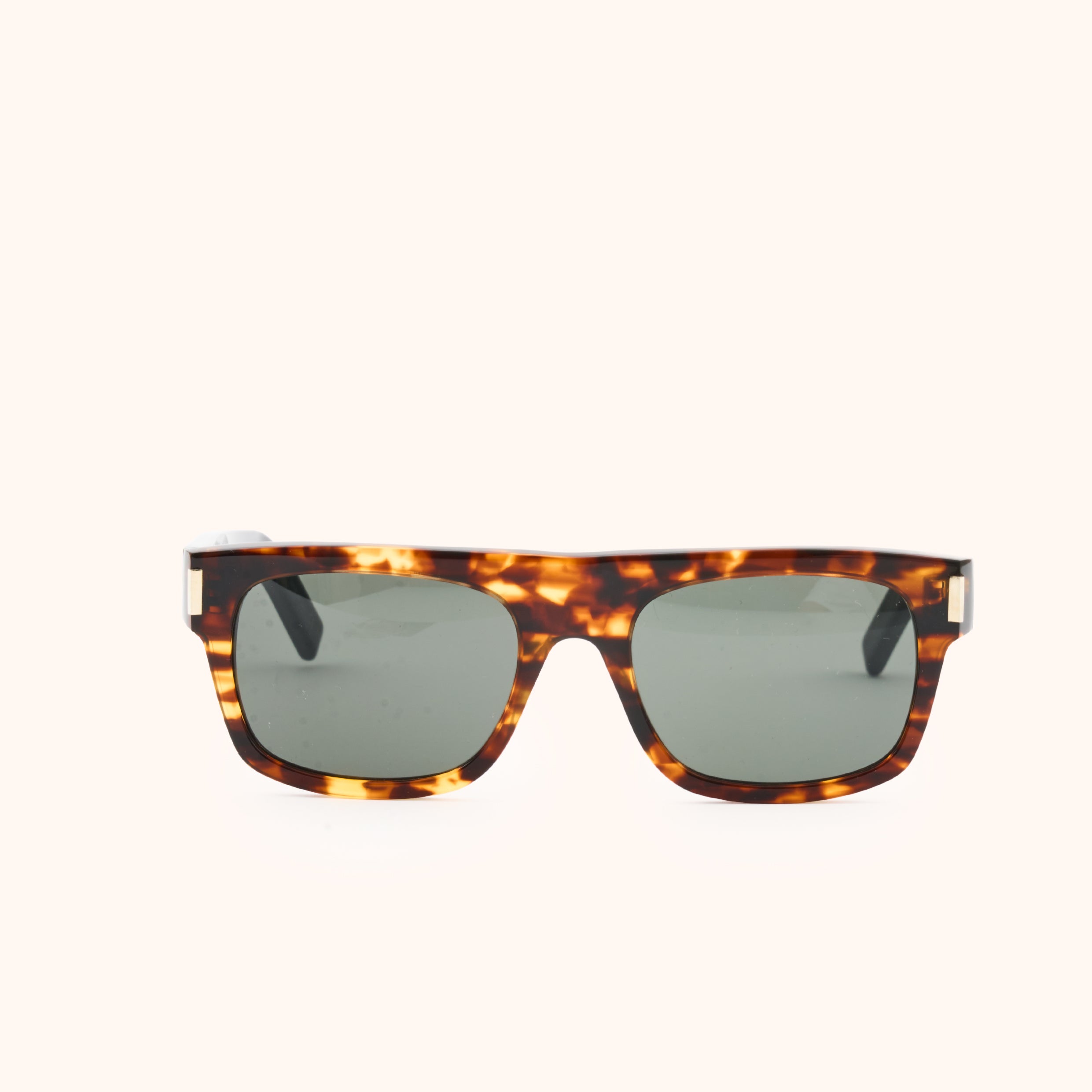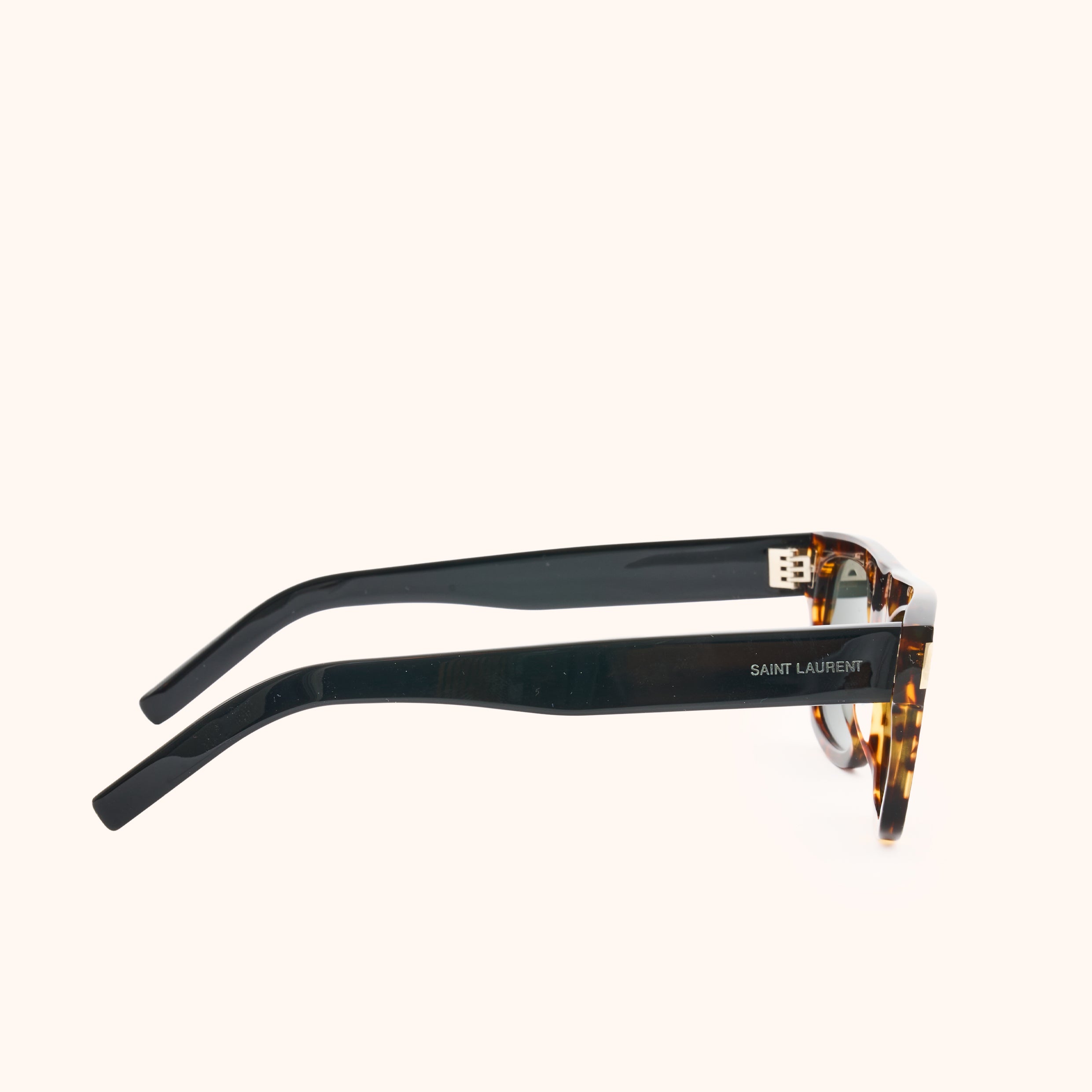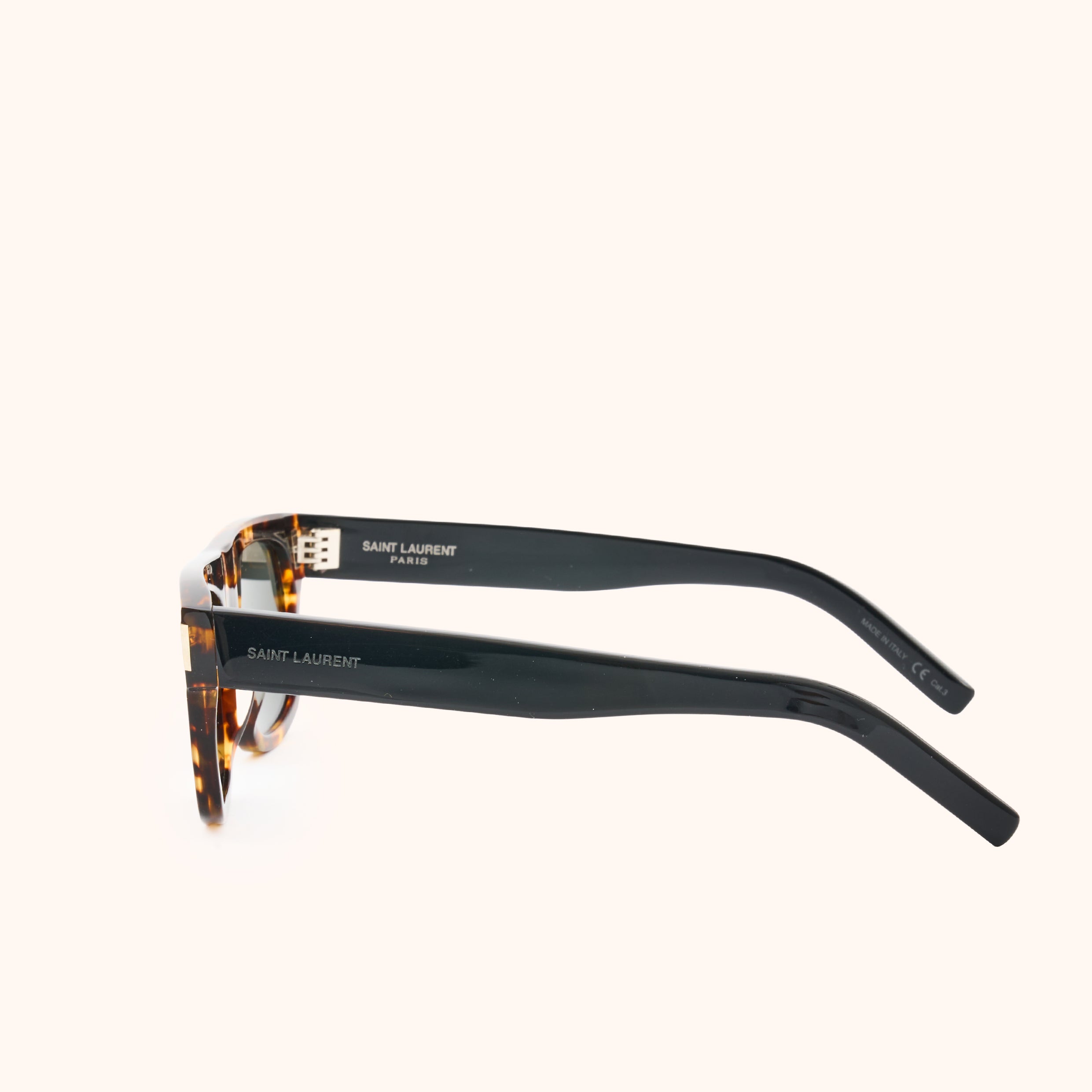 Die breiten, glänzenden Bügel in tiefem Schwarz tragen das feine „SAINT LAURENT“-Branding und sorgen für ein kraftvolles, urbanes Finish. Diese Brille ist wie gemacht für all jene, die mit Stil auffallen möchten, ohne sich in den Vordergrund zu drängen.