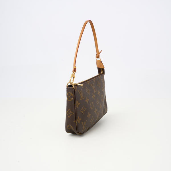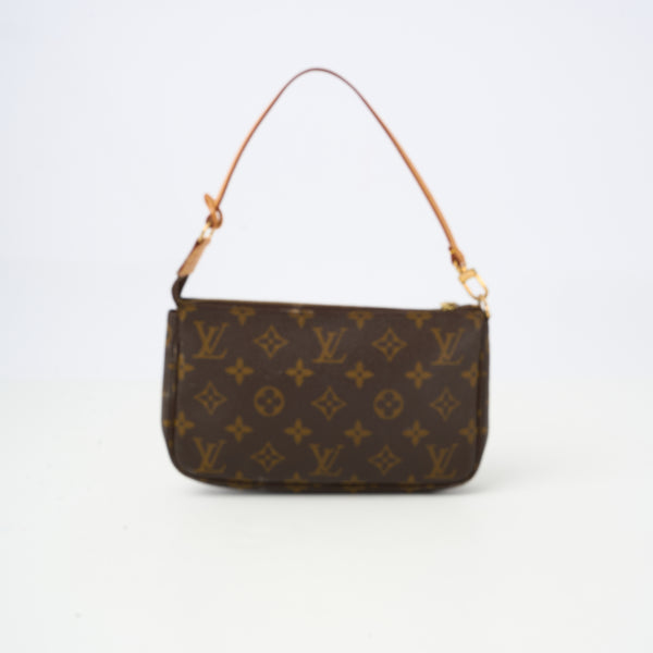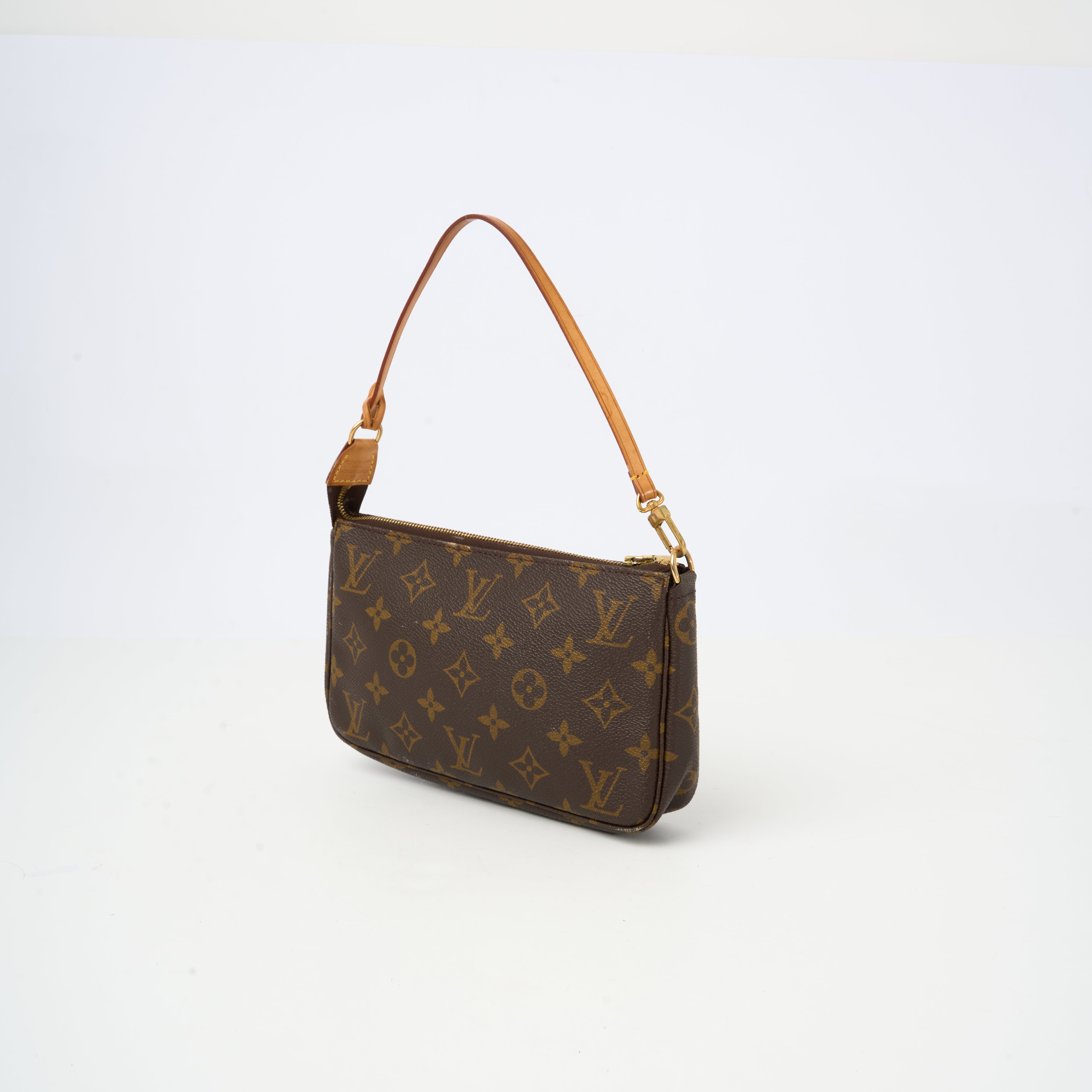 GutEin ikonisches Stück Louis Vuitton Geschichte: die Pochette Accessoires im klassischen Monogram Canvas. Diese elegante Tasche kombiniert zeitlose Ästhetik mit vielseitiger Funktionalität – sie lässt sich als Clutch, Crossbody oder in größeren Taschen als Organizer tragen.