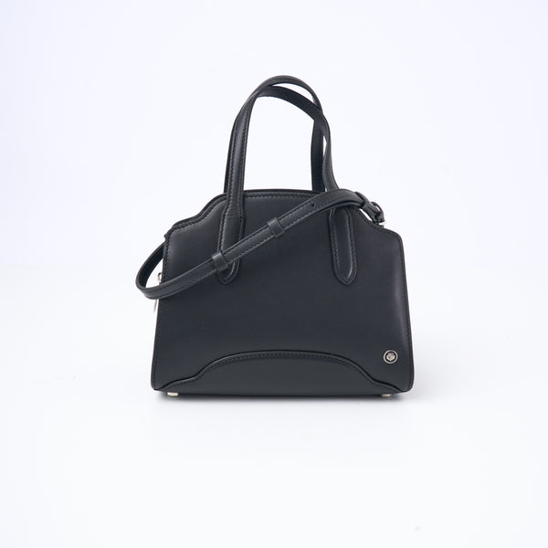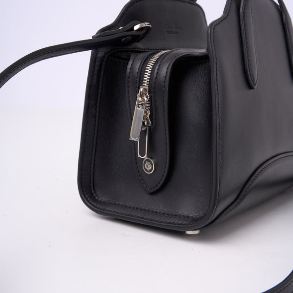 NagelneuDie Sesia Bag in der Small-Version ist eines der elegantesten Signature-Modelle von Loro Piana – benannt nach dem gleichnamigen Fluss in Italien, dessen sanfte Linien sich im kurvigen Design der Tasche widerspiegeln. Diese Version in klassischem Schwarz kombiniert Understatement mit höchster italienischer Lederkunst.